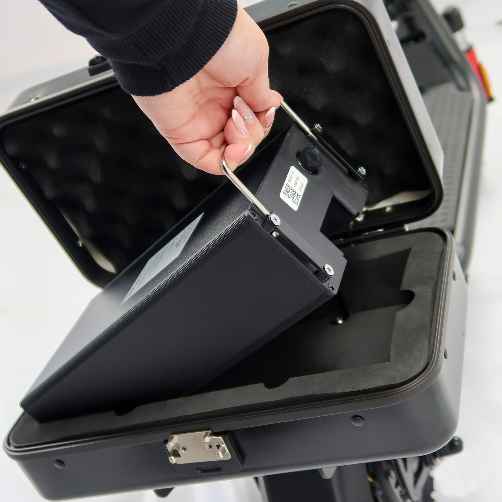 Die Sicherheit wird durch die Scheibenbremsen vorne und hinten gewährleistet, die auch bei hoher Belastung für ausgezeichnete Bremsleistung sorgen. Die 10-Zoll-Offroad-Luftreifen in Kombination mit dem Stoßdämpfer vorne und den Federbeinen hinten absorbieren Unebenheiten auf der Fahrbahn und bieten einen einzigartigen Fahrkomfort sowie Fahrstabilität und Sicherheit.