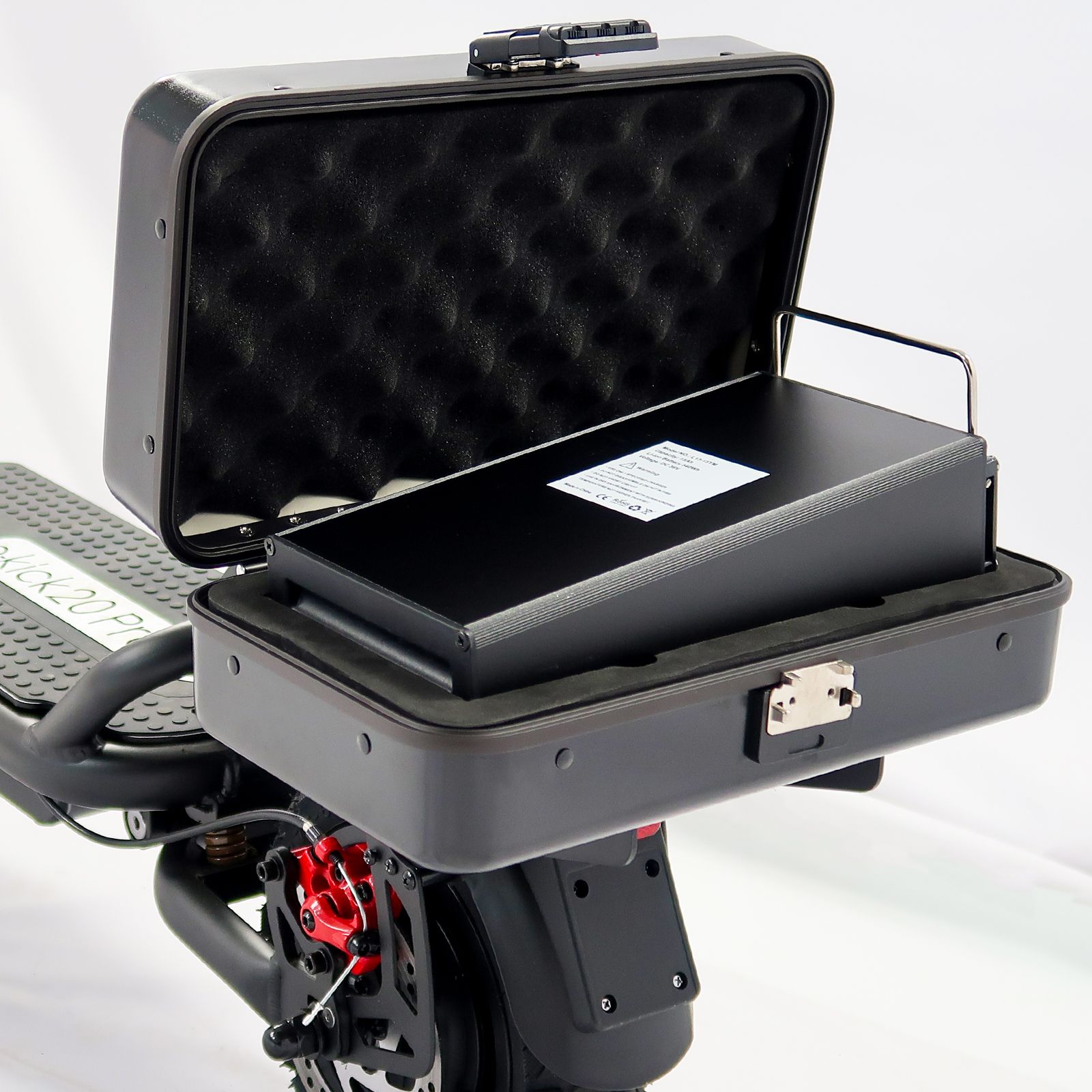 Dank des leistungsstarken 350W Hinterradmotors erreichen Sie schnell die maximal erlaubten 20 km/h. Mit einer Reichweite von 50-60 km ermöglicht der velix E-Kick 20 Pro auch das Fahren längerer Strecken mit nur einer Batterieladung. Die UN 38.3 konforme Lithium-Batterie ist gegen Überspannung gesichert, und der mobile 36V-15AH Akku lässt sich leicht herausnehmen und überall und jederzeit aufladen. Selbst das Aufladen des Akkus im Fahrzeug ist möglich.